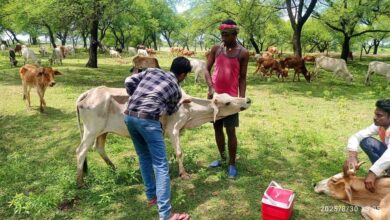 पशु चिकित्सा शिविर में मवेशियों को लम्फी बीमारी से बचाव हेतु टीकाकरण