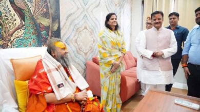 उप मुख्यमंत्री शुक्ल ने गोवर्धन में मलूकपीठाधीश्वर श्री राजेन्द्रदास जी महाराज का लिया आशीर्वाद