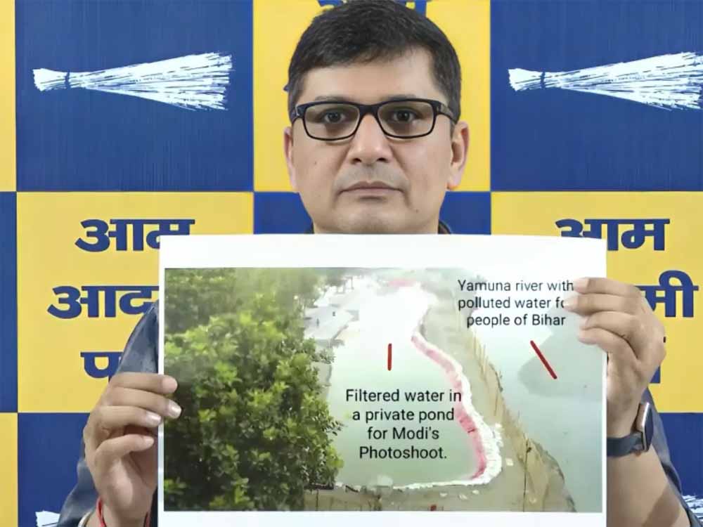 आप के दिल्ली संयोजक सौरभ भारद्वाज ने प्रेस कॉन्फ्रेंस कर बताया कि बिहार चुनाव में वोट बटोरने के लिए प्रधानमंत्री नरेंद्र मोदी छठ करने वाले थे,जिसके लिए दिल्ली की BJP सरकार ने वासुदेव घाट पर नकली यमुना जी बनाई गई थी,लेकिन इस नकली यमुना और उसमें फिल्टर वाला पानी भरे जाने की पोल खुल गई और प्रधानमंत्री नरेंद्र मोदी को अपना फोटोशूट रद्द करना पड़ गया। BJP का शीर्ष नेतृत्व दिल्ली की रेखा गुप्ता सरकार से बेहद निराश है, क्योंकि रेखा गुप्ता सरकार ने पूरा प्लान चौपट कर दिया और प्रधानमंत्री की फजीहत करा दी। बीजेपी सरकार के बताए प्रदूषण और बेरोजगारी जैसे तमाम आंकड़ों पर अब दोबारा से बहस शुरू हो गई है।