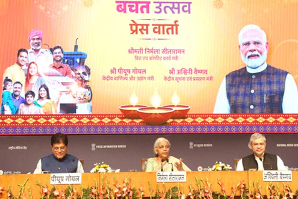 केंद्र ने शनिवार को कहा कि 22 सितंबर से लागू जीएसटी दरों में हालिया कटौती का लाभ त्योहारी सीजन में उपभोक्ताओं को भी मिला है। केंद्रीय वित्त मंत्री निर्मला सीतारमण, वाणिज्य मंत्री पीयूष गोयल और रेलवे, इलेक्ट्रॉनिक्स एवं आईटी मंत्री अश्विनी वैष्णव ने मीडिया को संबोधित करते हुए कहा कि हालिया जीएसटी सुधारों से उपभोग को लेकर सकारात्मक रुझान देखा गया है। वित्त मंत्री सीतारमण ने कहा, "करों में कटौती केवल त्योहारी सीजन के लिए ही नहीं की गई है। इन कटौतियों का मतलब है अधिक संग्रह, इसलिए कुछ वापस देने के लिए बेहतर राजकोषीय गुंजाइश। त्योहारी सीजन के बाद भी मांग बनी रहेगी।"