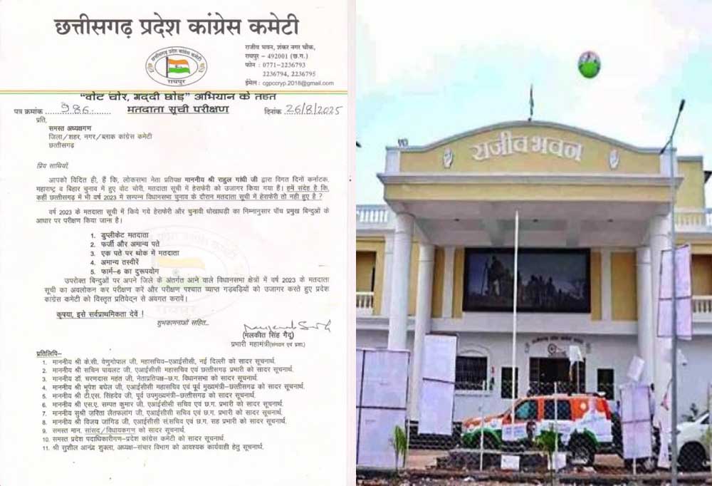 वोट चोरी को लेकर कांग्रेस लगातार आंदोलन कर रही है. अब छत्तीसगढ़ में भी कांग्रेस फर्जी वोटरों को ढूंढेगी. प्रदेश में मतदाता सूची के परीक्षण के लिए कांग्रेस ने आदेश जारी कर दिया है. प्रदेश कांग्रेस कमेटी ने सभी जिलाध्यक्षों को पत्र लिखकर हर विधानसभा की मतदाता सूची का परीक्षण कर चार बिंदुओं में जानकारी पीसीसी में जमा करने कहा गया है.