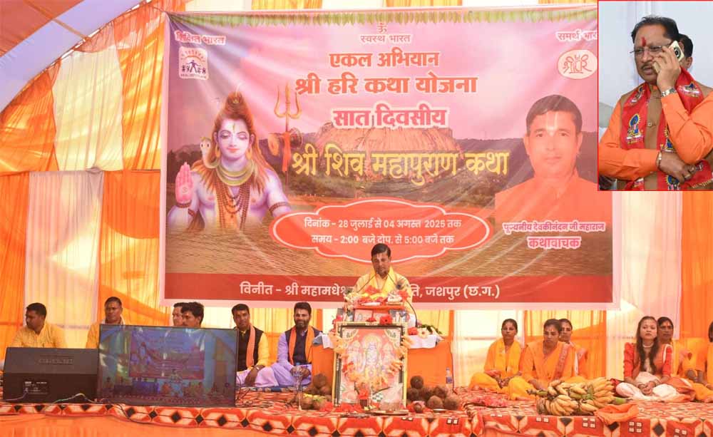 मुख्यमंत्री साय दिव्य शिव महापुराण कथा के समापन समारोह में वर्चुअली हुए शामिल