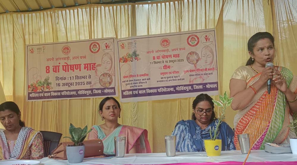 गोविंदपुरा परियोजना के इंद्रपुरी सेक्टर के आंगनबाड़ी केंद्र क्रमांक 549 में सोमवार को 8वें पोषण माह की गतिविधियों का रंगारंग आयोजन किया गया। इस मौके पर कार्यक्रम की थीम रही – “बच्चों की पोषण देखभाल करने वाले पुरुषों को पोषण चैंपियन से सम्मानित करना और उनकी कहानियां साझा करना।”