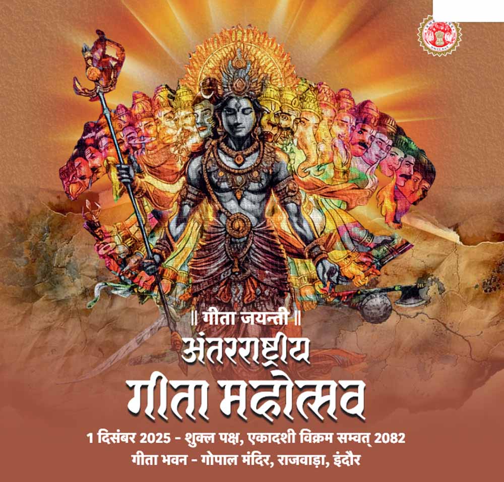 अंतर्राष्ट्रीय गीता महोत्सव को लेकर माननीय मुख्यमंत्री डॉ. मोहन यादव के संस्कृति सलाहकार एवं वीर भारत न्यास के न्यासी सचिव श्रीराम तिवारी ने बताया कि गीता जयंती 1 दिसंबर 2025 को मध्यप्रदेश में अंतर्राष्ट्रीय गीता महोत्सव भव्य स्तर पर मनाया जा रहा है यह महोत्सव न केवल आध्यात्मिक उत्कर्ष के प्रतीक हैं, बल्कि सांस्कृतिक जागरण का भी व्यापक साधन होगा। उन्होंने कहा कि गीता केवल धार्मिक ग्रंथ नहीं बल्कि जीवन जीने की कला सिखाती है। माननीय मुख्यमंत्रीजी के आह्वान पर गीता का संदेश प्रदेश के हर नागरिक तक पहुँचे ऐसे प्रयास किये जा रहे हैं। यह महोत्सव समाज में ज्ञान, कर्तव्य, अनुशासन और सकारात्मकता का वातावरण बनाने का माध्यम बनेगा।