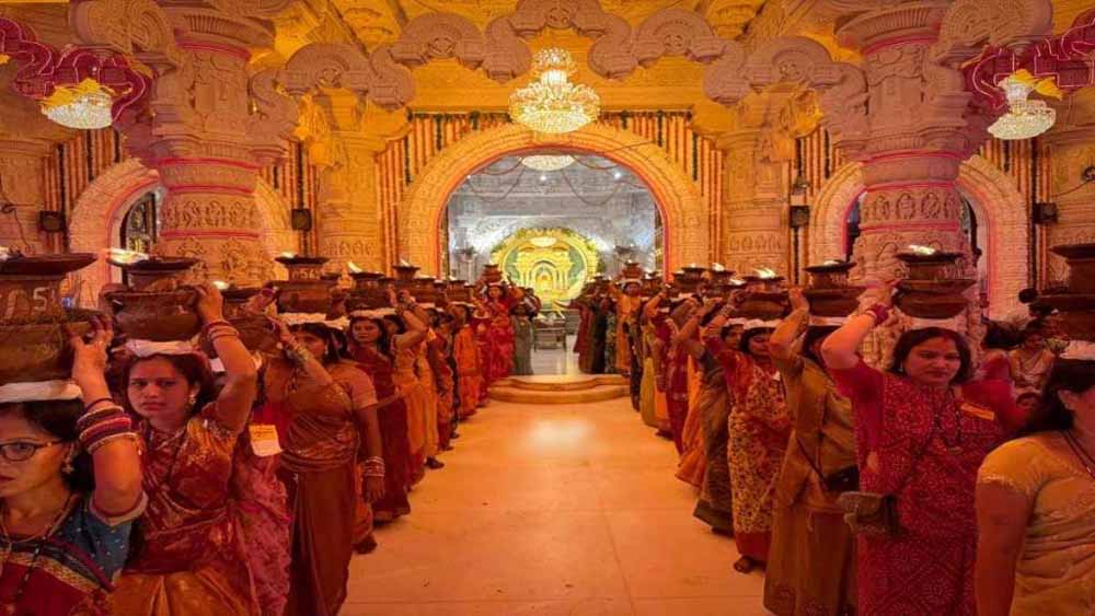 शारदीय नवरात्र के समापन पर मां बम्लेश्वरी मंदिर से देर रात एक भव्य शोभायात्रा निकली। इस शोभायात्रा में महिलाएं सिर पर ज्योति कलश लिए मां की जयकारों के साथ आगे बढ़ी। कुल 901 प्रज्वलित कलशों का महावीर तालाब में विसर्जन किया गया। यह अनूठा दृश्य देखने के लिए हजारों श्रद्धालु डोंगरगढ़ पहुंचे और तालाब किनारे आस्था का अद्भुत संगम देखने को मिला।