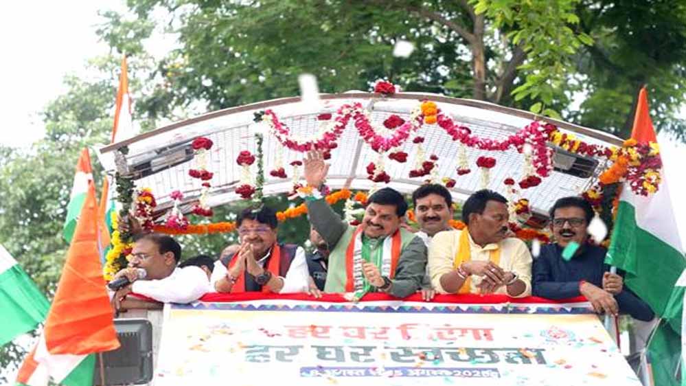 मुख्यमंत्री इंदौर में हर घर तिरंगा, हर घर स्वच्छता अभियान की यात्रा में हुए शामिल