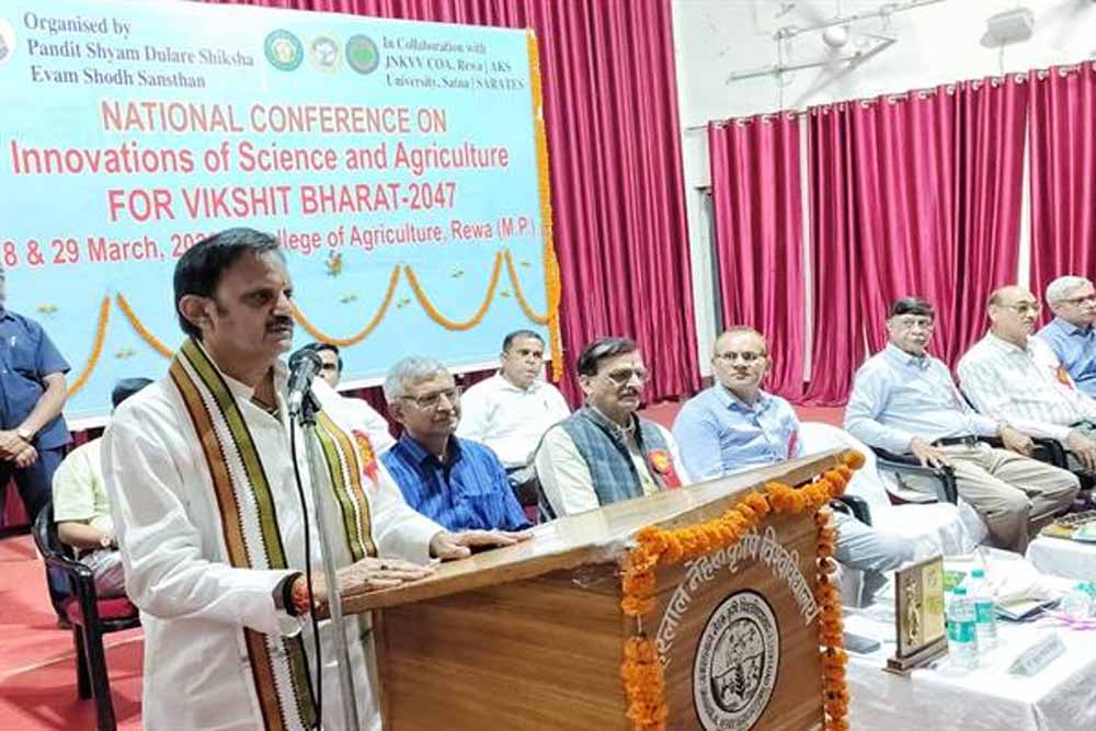 उप मुख्यमंत्री राजेन्द्र शुक्ल ने कृषि महाविद्यालय रीवा में विकसित भारत 2047 के लिए विज्ञान और कृषि में नवाचार विषय पर आयोजित दो दिवसीय राष्ट्रीय सम्मेलन शुभारंभ किया। इस अवसर पर उप मुख्यमंत्री ने कहा कि खेती हमारी अर्थव्यवस्था का आधार है। हम वर्तमान में विपुल अन्न और फल सब्जियों का उत्पादन कर रहे हैं। उत्पादन बढ़ाने के लिए हमने खाद और कीटनाशकों का अत्यधिक उपयोग किया है, जिसके कारण धरती माता बीमार हो गई हैं। धरती माता को स्वस्थ रखना और भावी पीढ़ी को स्वस्थ जीवन देने के लिए प्राकृतिक खेती इस समय की सबसे बड़ी आवश्यकता है । गोपालन पर आधारित प्राकृतिक खेती से ही हमें अच्छे स्वास्थ्य की नेमत मिलेगी। हर किसान अपनी कुल जमीन के दस प्रतिशत भाग पर प्राकृतिक विधि से अनाज फल और सब्जी का उत्पादन करें जिससे कम से कम उसके परिवार को रसायन रहित पौष्टिक आहार मिल सके। सेमिनार का आयोजन कृषि महाविद्यालय, जवाहरलाल नेहरू कृषि विश्वविद्यालय जबलपुर, एकेएस यूनिवर्सिटी तथा श्याम दुलारे तिवारी शिक्षा एवं शोध संस्थान द्वारा किया जा रहा है।