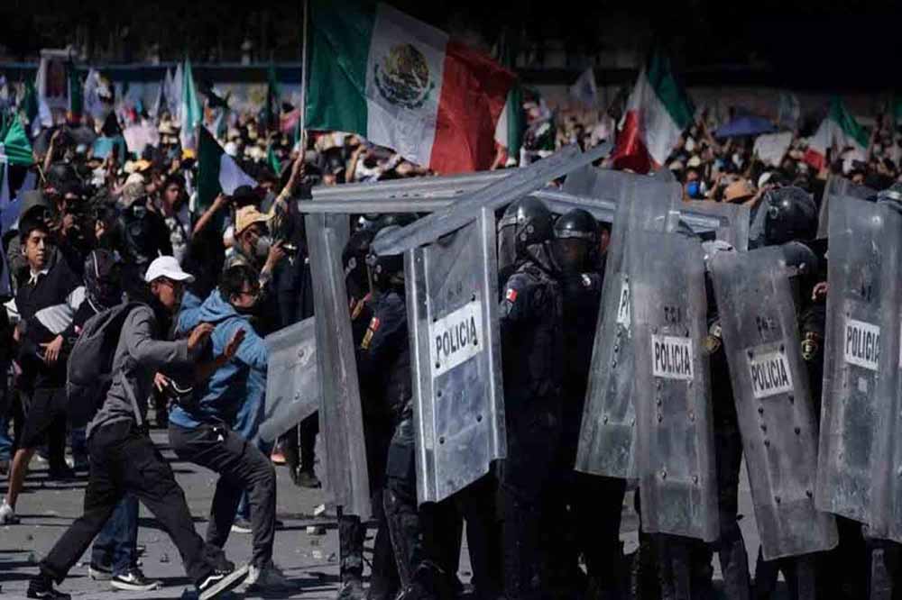 प्रदर्शन तेज होने के बाद हिंसक मोड़ भी लिया। प्रदर्शनकारियों ने पत्थर, डंडे और चेन के सहारे पुलिस पर हमला किया। मेक्सिको सिटी के सुरक्षा सचिव पाब्लो वैजेक के अनुसार, इस झड़प में लगभग 120 लोग घायल हुए, जिनमें 100 पुलिसकर्मी शामिल हैं। इस हिंसा में 20 लोगों को गिरफ्तार भी किया गया। एक 29 वर्षीय व्यवसायी ने कहा कि उन्हें अधिक सुरक्षा की आवश्यकता महसूस हो रही है। वहीं, एक 43 वर्षीय महिला फिजिशियन ने प्रदर्शन में शामिल होकर सार्वजनिक स्वास्थ्य प्रणाली के लिए अधिक फंड की मांग की। उन्होंने कहा कि आज डॉक्टरों को मार दिया जाता है और इसके लिए कोई जवाबदेही नहीं होती।