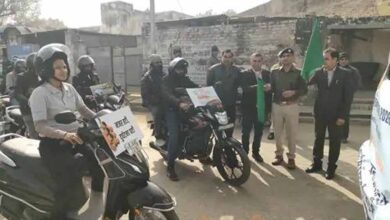 राष्ट्रीय सड़क सुरक्षा माह में निकाली हेलमेट बाइक रैली, यातायात नियमों का पालन करने का दिया लोगों को सन्देश