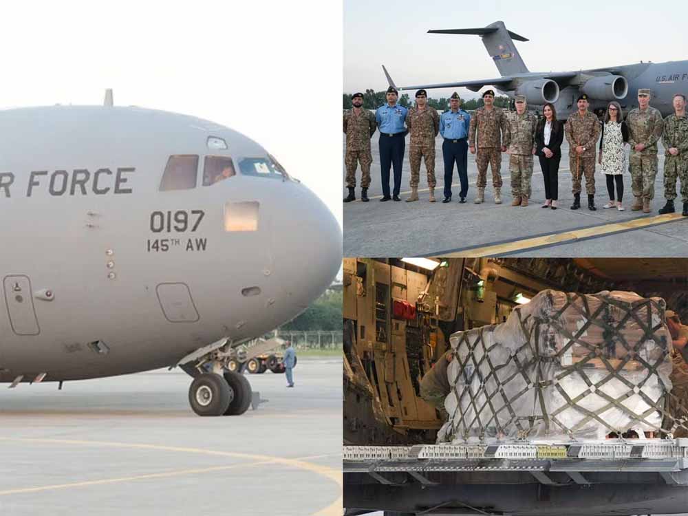 पाकिस्तान में आई विनाशकारी बाढ़ से प्रभावित लोगों की सहायता के लिए अमेरिका ने कई विमानों में भरकर राहत सामग्री भेजी है। इस्लामाबाद स्थित अमेरिकी दूतावास ने एक आधिकारिक बयान में यह जानकारी दी। इसने कहा कि पाकिस्तानी सेना के अनुरोध पर अमेरिकी सैन्य विमानों से राहत सामग्री पाकिस्तान में लाई गई है। ये विमान शुक्रवार, 6 सितंबर को रावलपिंडी के नूर खान एयर बेस पर उतरे, जहां पाकिस्तानी सेना के अधिकारियों और अमेरिकी चार्ज डी’अफेयर्स नेटली बेकर ने राहत सामग्री रिसीव की।